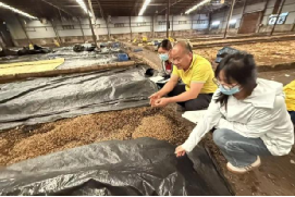 在四川雷剑科技有限公司,团队重点考察层叠式架养与资源化循环模式。企业采用立体架养提升空间利用率,以厨余垃圾、菌糠、豆渣混合饲喂,1克虫卵可产鲜虫5–7斤,日产量5–6吨;同时将虫粪堆肥发酵制成有机肥原料,实现废弃物资源化利用,形成完整生态循环链条。