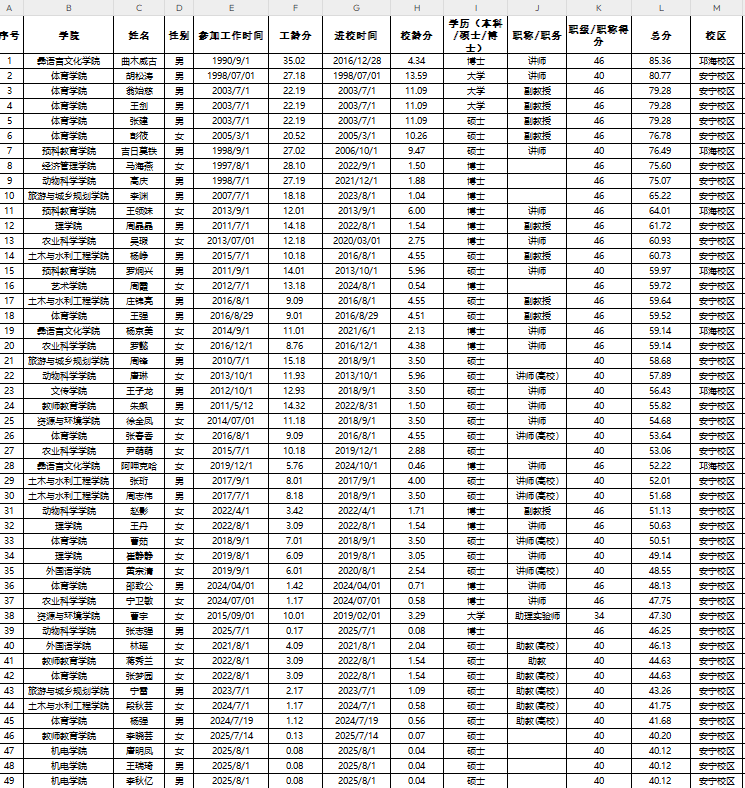 根据《西昌学院公有住房管理办法(试行)》(西学院〔2019〕168 号)第17条规定,“副高级及以下职称中的教学人员,根据教务处提供的课程表,一天中上、下午上课每周达三天及以上者,以学期为租住周期申请休息间”。根据各单位提交的相关申请材料,本学期符合租住休息间的专任教师共49名。根据规定,现予以公示。