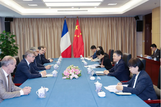 12月19日,生态环境部部长黄润秋在京会见法国参议院外交、国防、军事力量委员会主席佩兰率领的法国议员代表团。双方就应对气候变化、塑料污染治理、清洁能源发展、核安全监管等共同关心的议题进行深入交流。