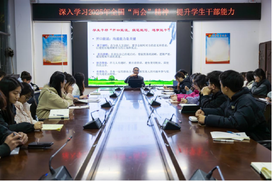2025年12月18日19:00,“书记上党课”在8109会议室开展。学院党委副书记冉龙舞同志,围绕2025年全国“两会”精神,结合经济管理学院学生党员实际情况,以宏观视角,塑造青年“政治过硬、敢于担当、锐意改革、实绩突出、清正廉洁”的成长路径。以微观为切入点,把“高质量发展”转化为学风建设,把“教育、科技、人才三位一体”战略与青年责任结合,提高青年的业务能力。