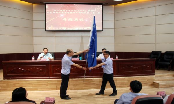 5 最后,凉山州烟草专卖局(公司)党组成员、副局长胡凯临和西昌学院党委常委、副校长胡金朝分别向凉山州烟草专卖局(公司)2020年专卖序列人员素质提升专题培训班(第一期)的四位营长授旗。