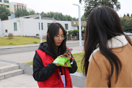 本次活动由学生志愿团队主导,以“流动式有奖问答”的形式推进,让防诈骗知识深入人心。志愿团队随机邀请过往同学,围绕“全国统一的反电信网络诈骗专用号码是?”“保护你资金安全的最后一道防线,绝对不能告诉任何人的‘三件套’是什么?”等问题进行互动问答,答对的同学可以当场获得小奖品,答错的志愿者也会及时讲解正确的防诈知识。