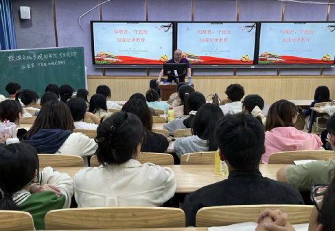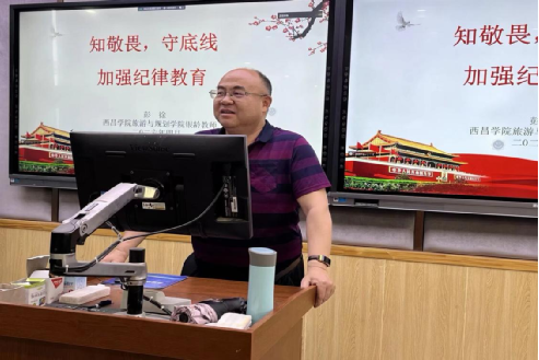 4月2日,旅游与城乡规划学院学生党支部在致知楼116教室开展专题党课活动。本次党课以“知敬畏 守底线 加强纪律教育”为主题,由彭徐教授主讲。学院学生第一党支部书记车孟霞,第二党支部书记朱冬寅,全体学生党员、预备党员及入党积极分子到场学习。