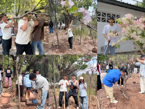 3月13日下午,预科教育学院一场以“植绿护绿 共育芳华”为主题的植树节活动,在春日暖阳下生动开启。这不仅仅是一次劳动,更是一堂行走的“大思政课”,师生们以劳动为犁,深耕生态文明之壤;以树苗为笔,共绘民族团结与青春担当的画卷。