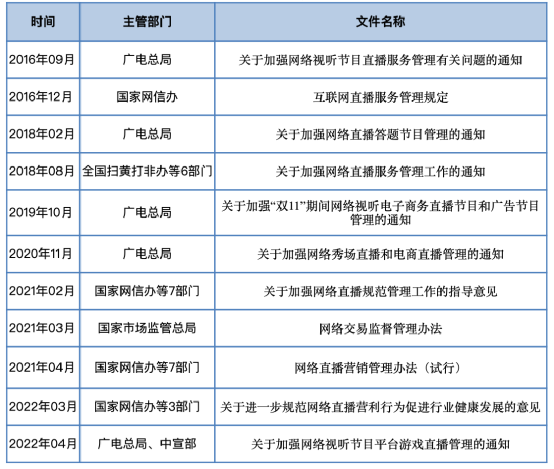 相关部门出台多个文件持续规范网络直播行为,强化协同监管,完善综合治理体系,基本确立以下规则。