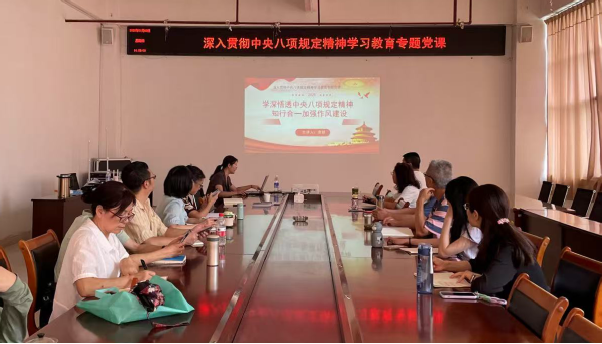 深入贯彻中央八项规定精神学习教育专题党课  2025年7月3日下午党委常委、副院长袁颖来馆为机关十六党支部讲《学深悟透中央八项规定精神 知行合一加强作风建设》的专题党课。机关十六党支部全体党员参加,图书馆副馆长(主持工作)李红琴主持。 袁院长讲授了“前言:八项规定的时代抉择”和相关中央八项规定精神的五个内容,一是习近平总书记关于作风建设的重要论述;二是学习教育的重要意义;三是运用好深入贯彻中央八项规定精神的成效和经验;四是常态长效纠治 “四风” 顽疾;五是作风建设新成效赋能发展。 党课完毕之后,袁院长与全体支部党员共勉了三个方面:1.提高政治站位,锤炼政治品格;2.站稳人民立场,办好民生实事;3.坚持问题导向,书写干净担当。她结合图书馆的工作,对党员在图书馆工作中的带动作用给予了积极肯定,她讲到,图书馆的服务意识大大增强,全馆拧成一股绳,团结奋斗,2025年的工作进展目前顺利推进,完成了往年没有的进度,这样的工作节奏就是机关十六党支部工作作风的具体体现。  |