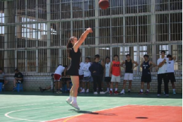 篮球对决,往返运球上篮与一分钟投篮考验综合实力。选手运球行云流水、投篮精准展现球类专长与过硬心理素质。