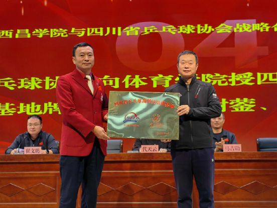 在全体与会人员的共同见证下,四川省乒乓球协会向西昌学院体育学院授予四块牌匾,分别为:“四川省乒乓球运动水平等级评定测试基地”“四川省青少年乒乓球后备人才亚高原训练基地”“四川省乒乓球裁判员培训基地”及“四川省乒乓球教练员培训基地”。授牌环节标志着双方合作正式启动,未来将携手推进乒乓球人才的全方位培养与社会服务推广。
