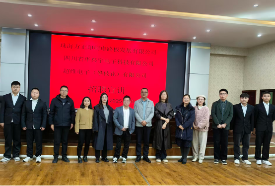 为深化产教融合、拓宽就业渠道,助力学子精准对接行业优质岗位,2025年12月4日,在理学院邀请下,珠海方正印刷电路板发展有限公司、四川省华兴宇电子科技有限公司、超维电子(攀枝花)有限公司三家电子电路行业标杆企业组团莅临我校,开展专场招聘宣讲与现场面试活动,为我院材料科学与工程、化学及信息技术和机械与电气工程学院等相关专业学子带来了丰富的就业机遇。