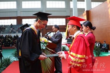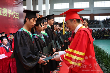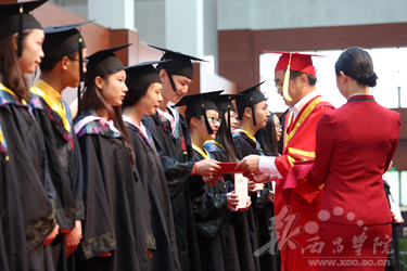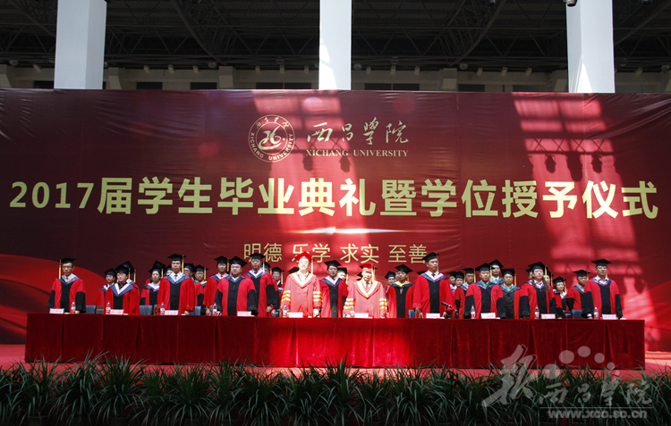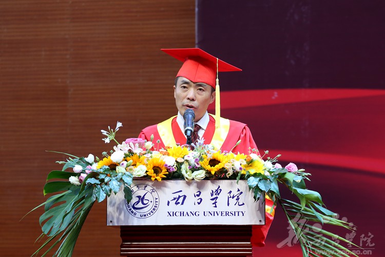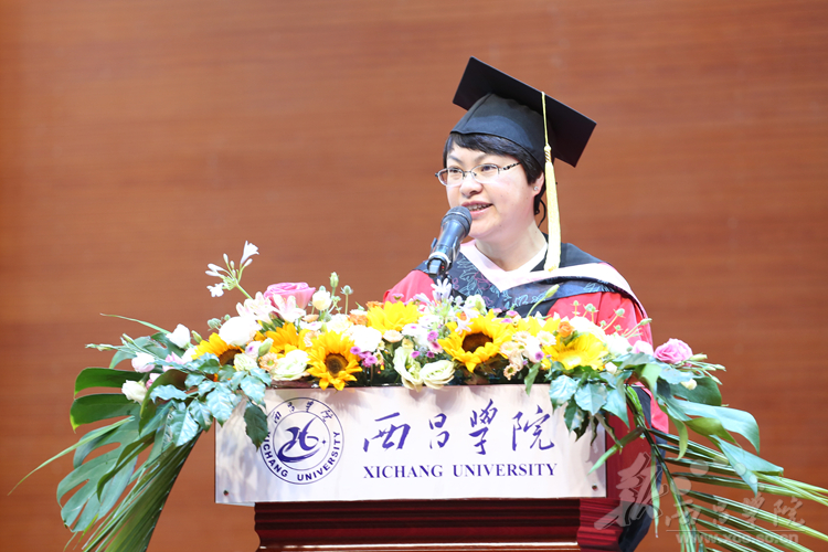 彭校长讲到,大学毕业并不意味着学习的终结,毕业生即将面对社会,需要学习许多书本上学习不到的知识。2017届毕业生在校学习的四年,学校紧紧围绕教学中心工作,着力提升教学教研水平,大力推进教育深化改革,于2015年被四川省列为首批“本科院校整体转型发展改革试点”学校,2016年成功申报教育部产教融合项目并获项目资金1.48亿。学校正朝着“全国民族地区知名的、特色鲜明的、高水平综合性应用技术大学”的目标迈进。学校为全体毕业生准备了“书香西昌学院”读书卡,该卡能让同学们终身阅读到10万册电子图书、3万册听书和3000多种主流期刊。最后,他希望同学们走出校园能秉承“乐学”的校训精神,成就坚韧、从容、干净的自己,得到世界的善意对待,被周边的人接纳,遇到真心相待的爱人,成就圆满幸福的人生。