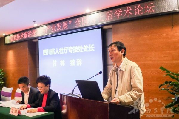 四川省人力资源和社会保障厅专业技术人员管理处处长付林致辞。他讲到,博士后制度是培养高层次创新型青年人才的一项特殊制度,长期以来在青年科技人才培养上发挥了独特作用。四川省委省政府历来高度重视博士后队伍建设,先后出台了政策文件;不断加大财政收入,扩大招收博士后规模;鼓励产学研结合,支持有条件的企业设立博士后工作站和博士后创新实践基地。博士后制度已经成为了各地区、各单位培养、吸引高层次人才的重要渠道,成为技术创新主题的重要平台,成为高校、科研院筛选、补充师资和科研人员的重要渠道,广大博士后活跃在经济发展、社会事业、科学研究、产业升级一线,作出了独特贡献。最后,他表示,希望与会的博士后们围绕信息技术展开理论探讨,扩宽学术研究视野,碰撞出创新的火花,结出更多的科研成果,共同推动全国信息技术的发展。