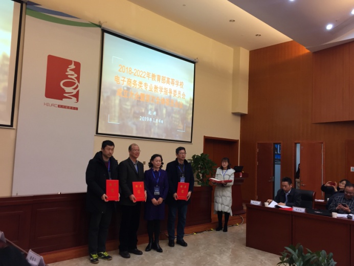 教育部高教司朱蓓蓓处长、商务部电子商务和信息化司候斌处长,以及来自清华大学、浙江大学、南京大学、西安交通大学、北京交通大学、对外经贸大学、上海财经大学等国内30多所高校电子商务专业领域的近60位专家参加会议。贺盛瑜院长作为新一届教指委副主任委员出席会议,并与教育部、商务部领导及其他主任委员共同为新一届教指委委员颁发了聘书。
