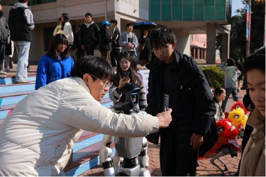 2025年12月31日14:00,在新年钟声即将敲响之际,信息技术学院与宇树科技联合举办的“校企联动,智创未来”校园科技秀活动在我校书田广场精彩呈现,以“前沿技术展示+沉浸式互动体验”的形式,为信息技术专业学子打造了一场兼具知识性与实践性的科技盛宴。