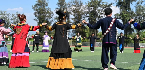 比赛现场气氛热烈,大家跟着节拍击掌、喝彩,亲密感与归属感在鼓点里迅速升温。每一个整齐的舞步、每一次查尔瓦的翻飞,充分展现彝族文化的独特魅力和青春活力。他们脸上洋溢着自信的笑容,用舞步诠释着对民族文化的热爱和对大学生活的憧憬。