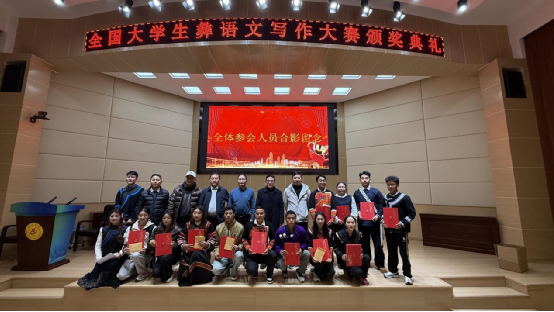 为贯彻落实习近平新时代中国特色社会主义思想,弘扬中华优秀传统文化,颂扬时代精神,传播现代文明,由西昌学院彝语言文化学院和凉山彝族自治州语言文字工作服务中心联合主办了第九届全国大学生彝语文写作大赛。2025年12月2日晚,颁奖典礼在西昌学院邛海校区学术报告厅举行。西昌学院二级教授阿牛木支、彝语言文化学院党委书记陶际恒、《凉山日报》彝文版编辑马海吃吉、彝语言文化学院教师沙马阿木、吉洛打则、马海五达以及150余名学生参加本次颁奖典礼。