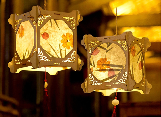 猜灯谜:中秋月圆夜,公共场所会挂起许多灯笼,灯笼上写有谜语,人们聚集在一起猜灯谜。