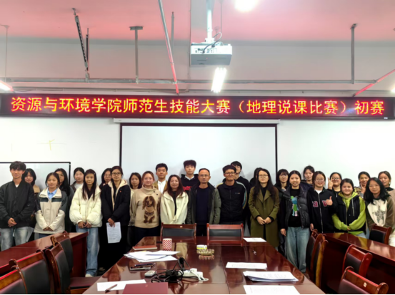 为响应新时代地理教育改革号召,培养学生地理实践力和综合思维,资源与环境学院于2025年11月14日下午2点在十二教七楼会议室开展了“资源与环境学院2025年师范生技能大赛——地理说课比赛”。本次参与人员有学生科副科长陈建宾,分团委学生会各部门干事,23、24级地理科学专业的同学。