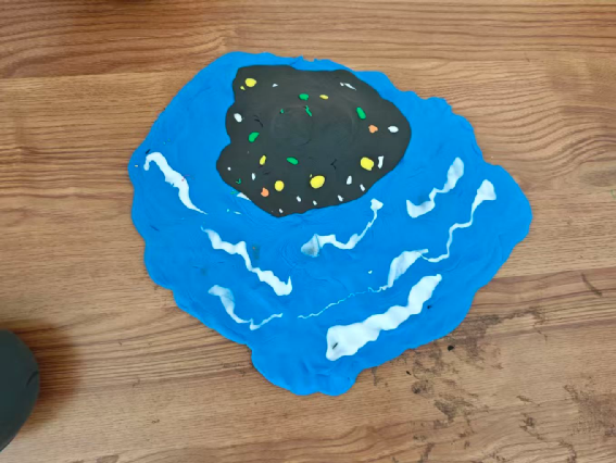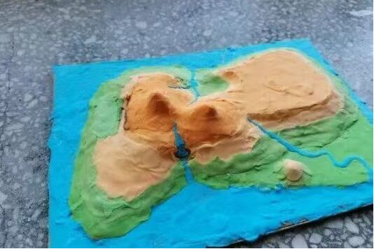 创作过程中,同学们热情高涨、配合默契。大家对照地图反复研究,交流思路、调整比例、完善细节,在压实、塑形、打磨中不断提升模型的科学性与美观度。从地形构思、材料塑形到成果展示与讲解,各组同学认真完成每一个环节。现场氛围专注而热烈,同学们在实践中学习地理知识,在互助协作中增进友谊,真正实现了“做中学、学中悟、悟中进”的目标。